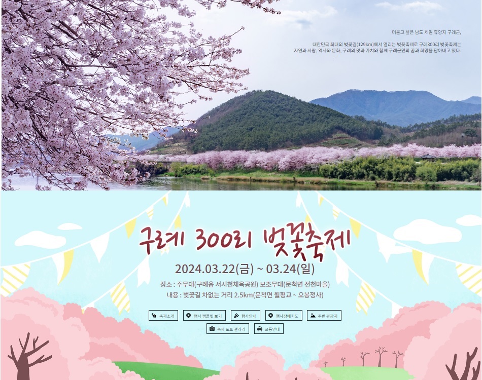 3. 구례 300리 벚꽃축제(2024월3월22일~3월24)